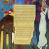 Inspired by Chagall’s artwork, Candle Gazing depicts a Bride and a Groom holding each other close, awed by a shared mystical vision. Flowers, fairies playing music, and green/yellow/orange candles surround them as they float far from the confines of their home. Three candles speak of the creative possibilities that are already flowing from the beauty of their coming together.