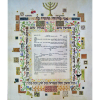 This classic Ketubah, design has the appearance of an ancient text. The Menorah crowning this Ketubah represents Jewish tradition and Jewish history. A vine filled with flowers and birds surrounds the text symbolizing growth, fruitfulness and the strength of Israel.